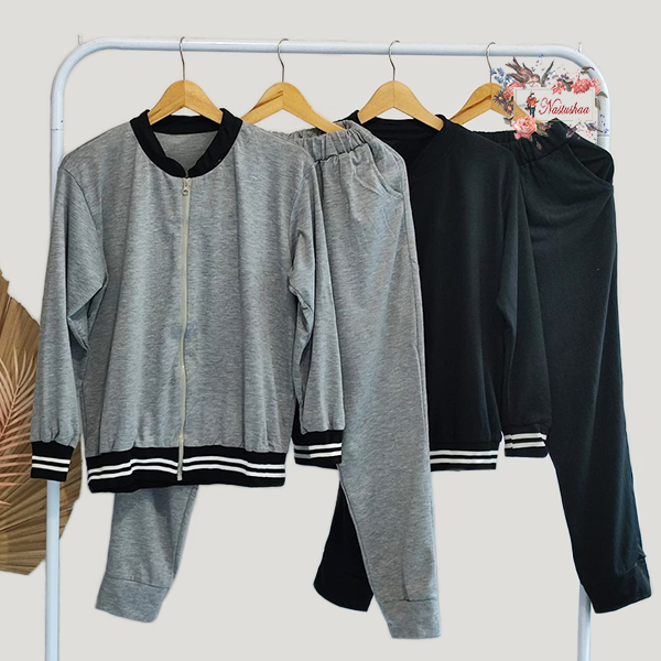 Pakaian Wanita > Set > Set Wanita > Setelan Jaket Celana Panjang Wanita Set Wanita Bahan Babyterry Kombinasi Ribs Resleting Depan Busui Friendly Baju Olahraga Variasi Logo Kekinian