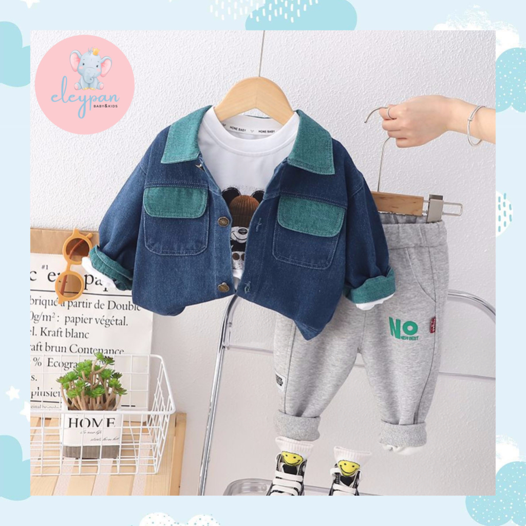 Setelan Jaket Jeans Jogger 3in1 Premium Import Set Outer Denim Baju Kaos Lengan Panjang Celana Anak Laki-Laki