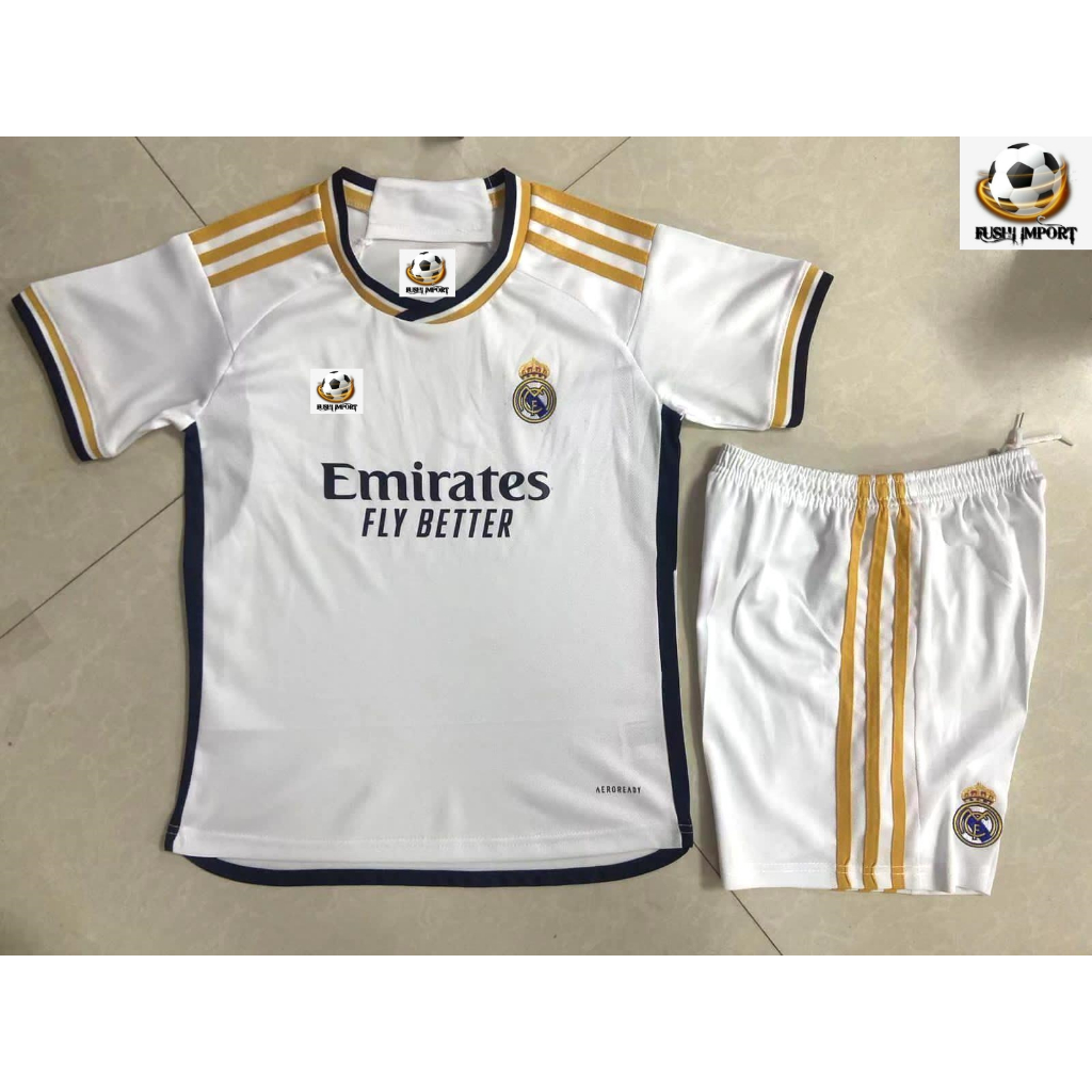Setelan Jersey Baju Bola Anak Madrid Home Kids 2023 2024 Fullset Satu Set Grade Ori