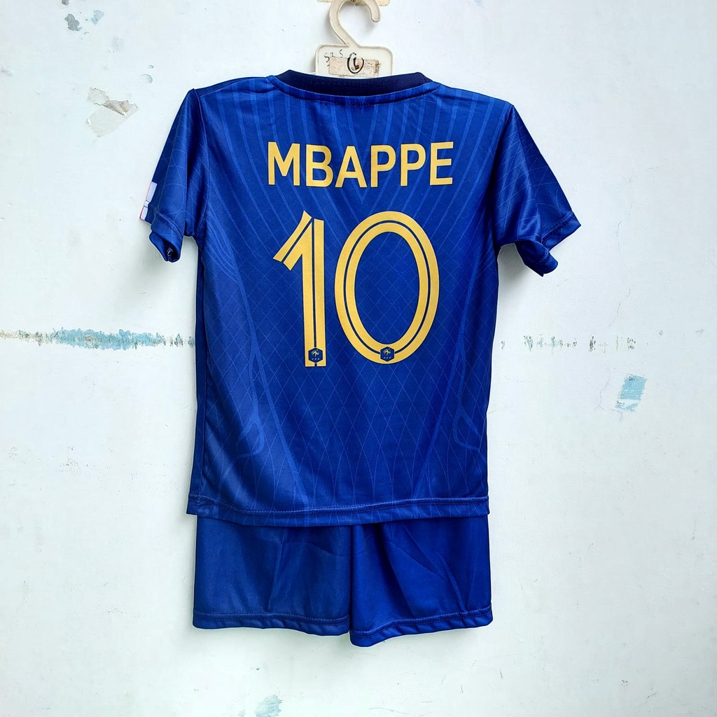 Detail setelan jersey bola prancis/jersey bola negara prancis/baju bola setela mbappe anak