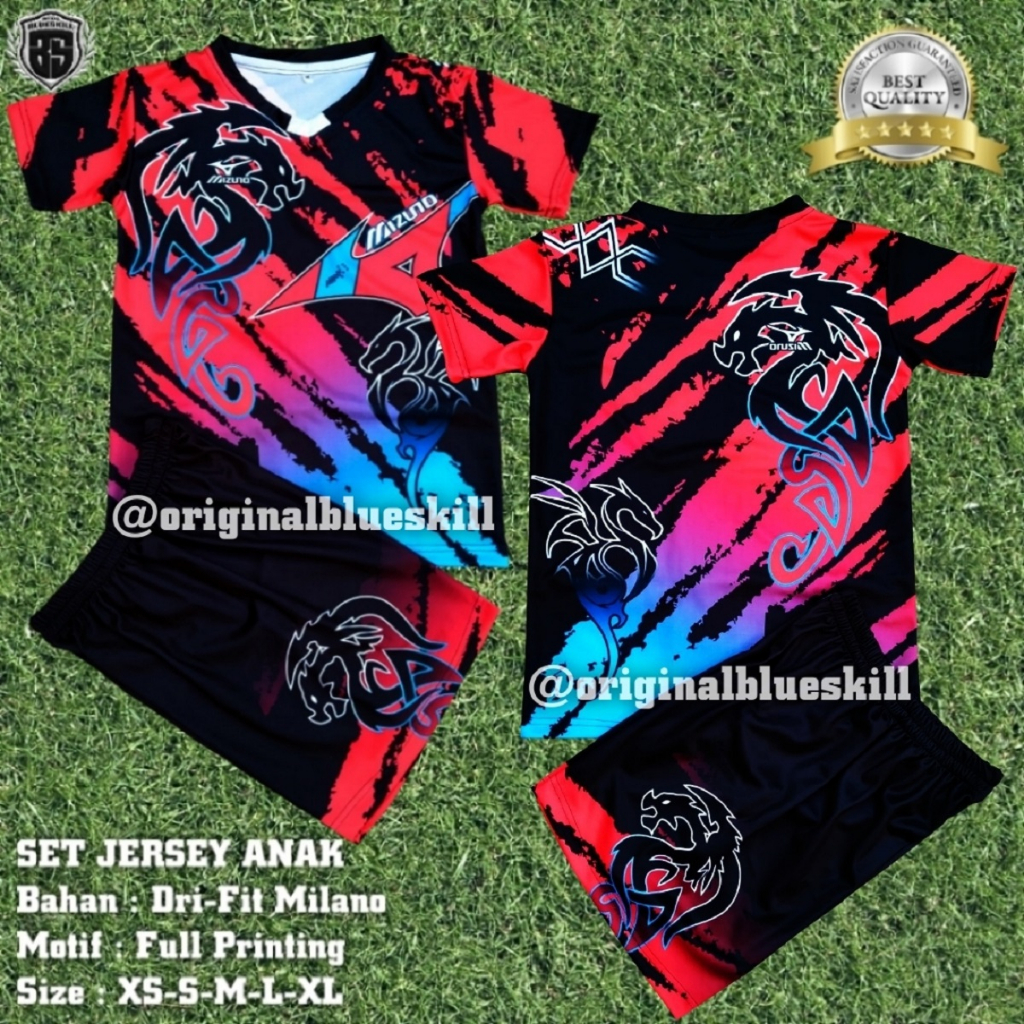JERSEY SETELAN ANAK SPESIFIKASI : - Bahan Dri-Fit Milano - Motif Fullprinting - Size XS-S-M-L-XL