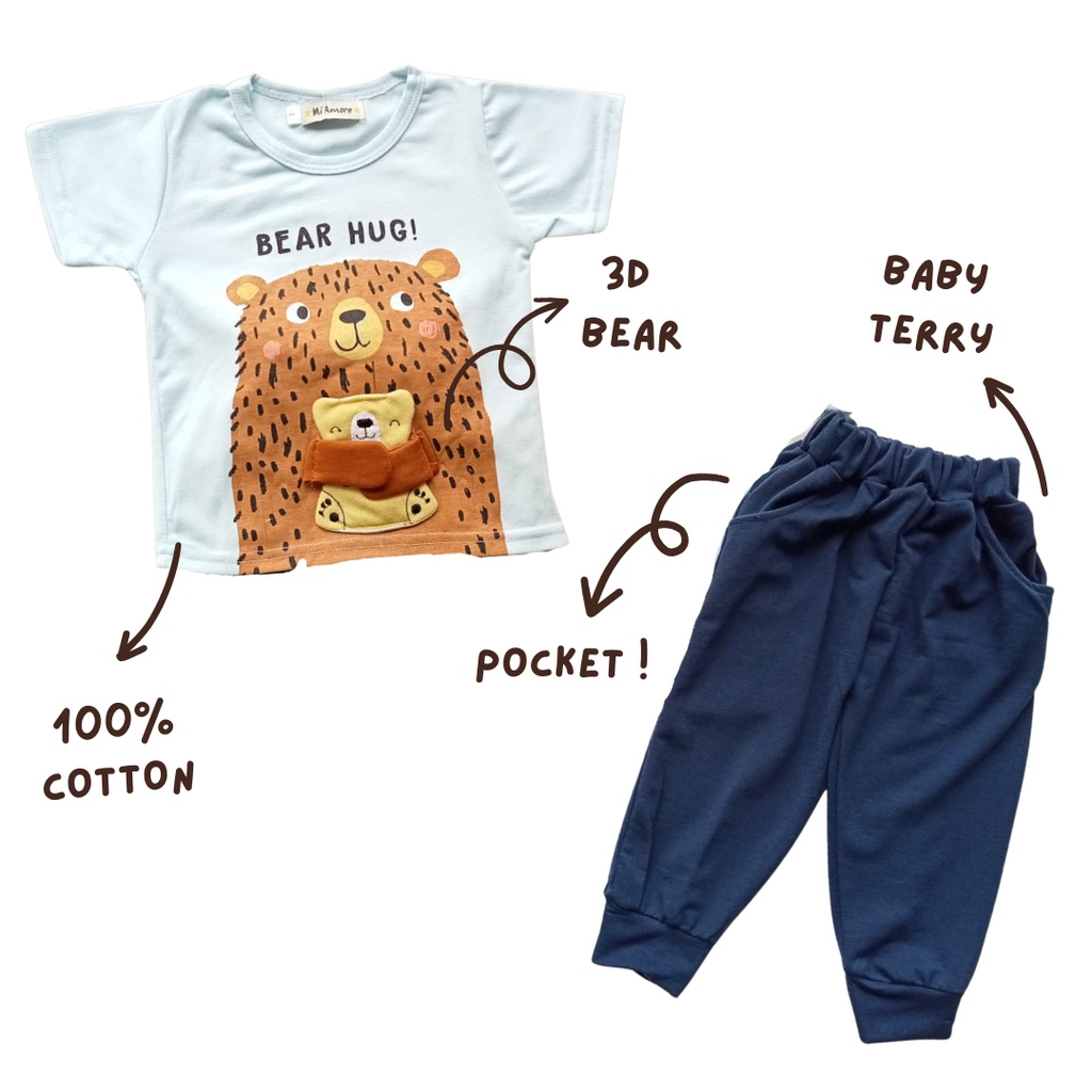 setelan jogger anak laki laki baju anak laki laki baju balita cowok 1 2 3 tahun kaos lengan pendek setelan kaos anak jogger panjang BEARHUG TEE SET
