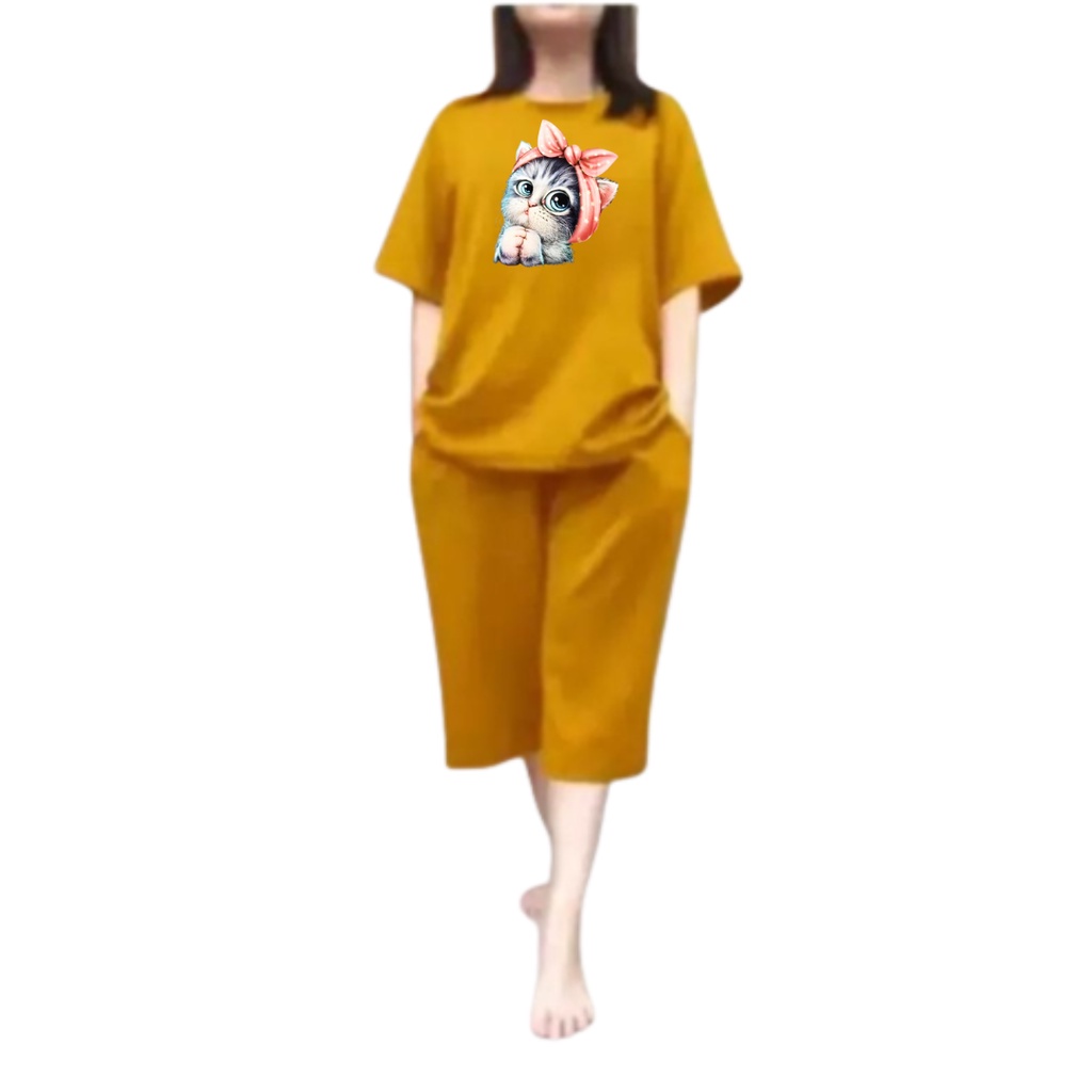 Setelan Jumbo Oversize Wanita Kucing Pita Celana Pendek