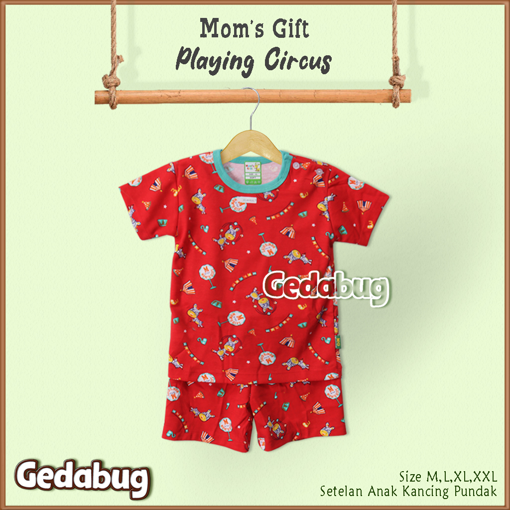 Detail Setelan Kaos Anak Moms Gift Playing Circus PENDEK | Setelan Baju bermain Anak Mom's Gift | Gedabug