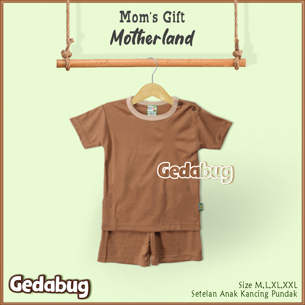 Detail Setelan Kaos Anak Pendek Mom's Gift Motherland Polos | Setelan Kaos anak Kancing Pundak Moms Gift | Gedabug