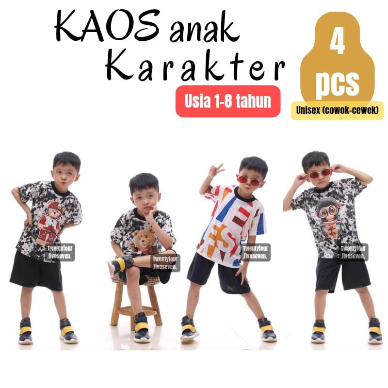 Detail Setelan Kaos Karakter Kartun Anak Laki laki dan Perempuan Usia 1-8 Tahun Murah Terbaru Baju Teddy Bear Mc Queen Bus Truk