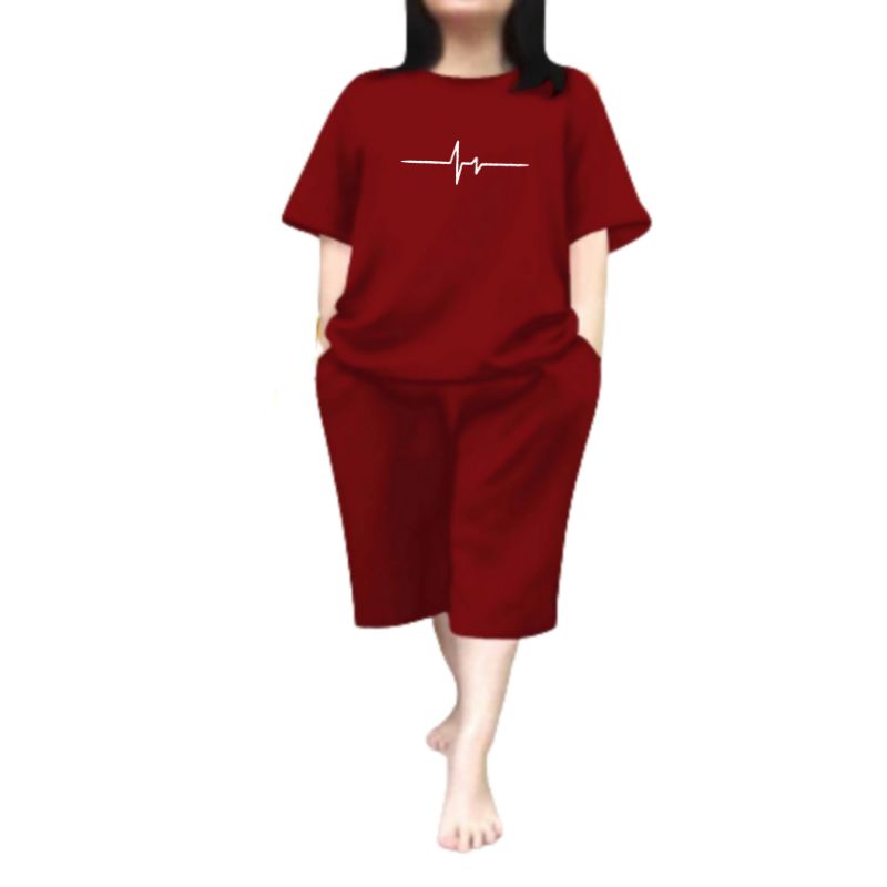Detail Setelan Kaos Wanita Celana Pendek 3/4 Terbaru 2023 One Set Wanita Dewasa Kekinian Viral Jantung