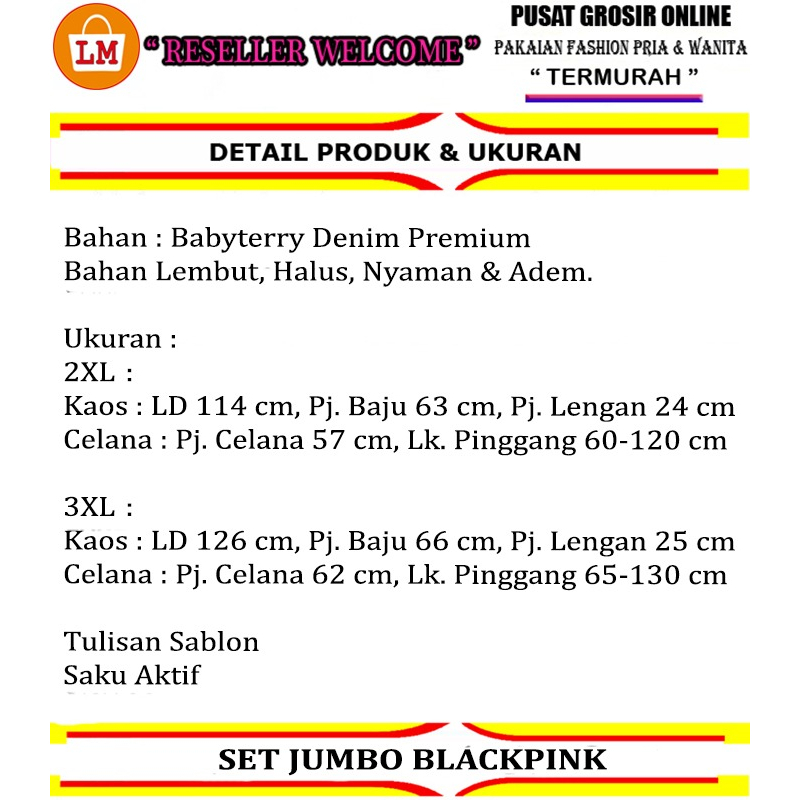Detail Setelan Kaos Wanita SET BLACKPINK Bahan Babyterry Denim Premium Jumbo Big Size XXL - XXXL / 31865