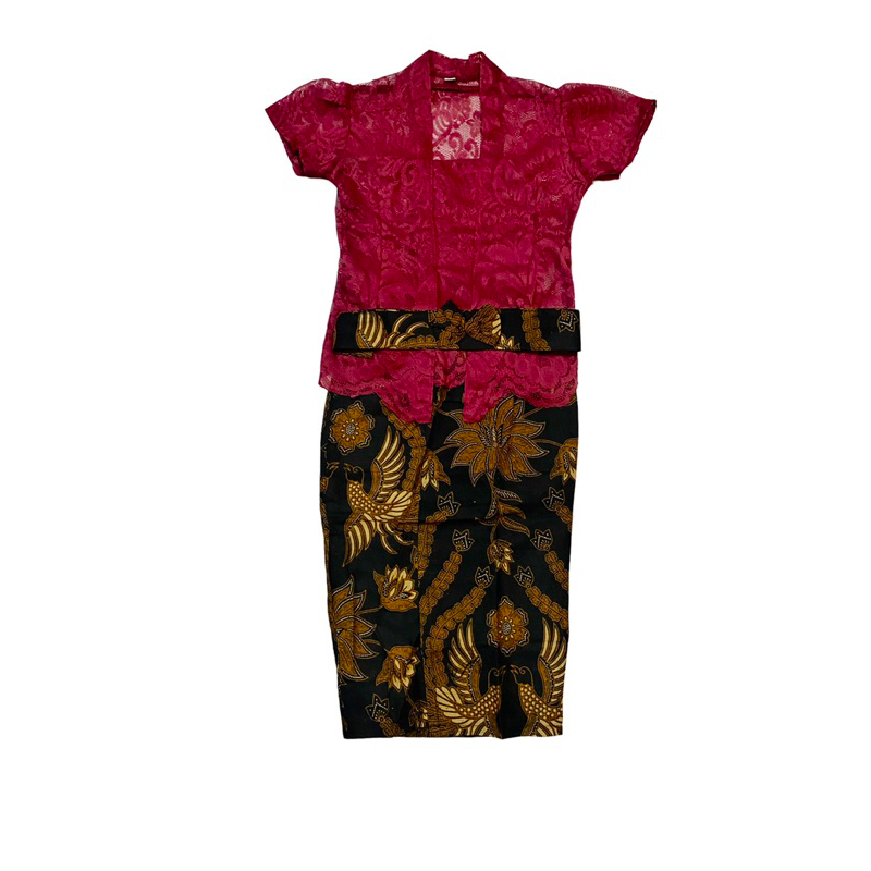 Satu setel kebaya jadi brokat + kamen katun batik + sabuk pita