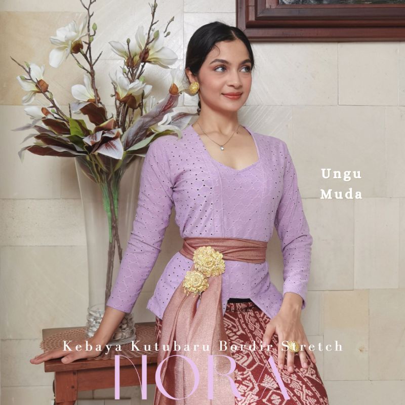 Detail Setelan Kebaya Kutubaru Katun Bordir Stretch Lengan Panjang Nora