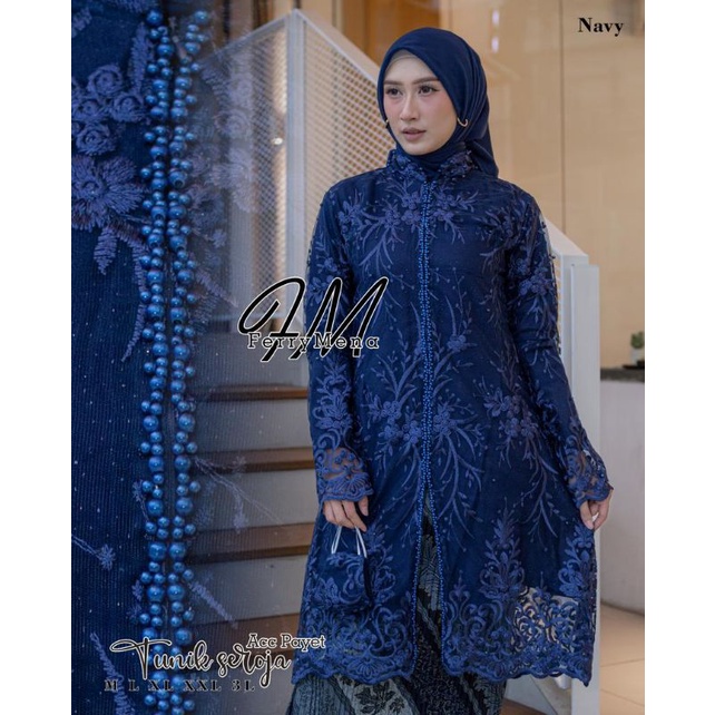 Matt bahan tulle bordir mix payet Full puring bahan hyget Resleting depan ( busui friendly ) Tangan lurus panjang