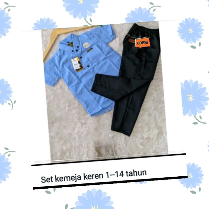 setelan kemeja anak lengan pendek celana panjang1/7tahunbetseller