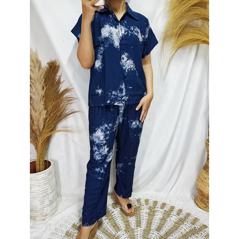 SETELAN KEMEJA BUSUI LENGAN PENDEK / PIYAMA TIE DYE BALI