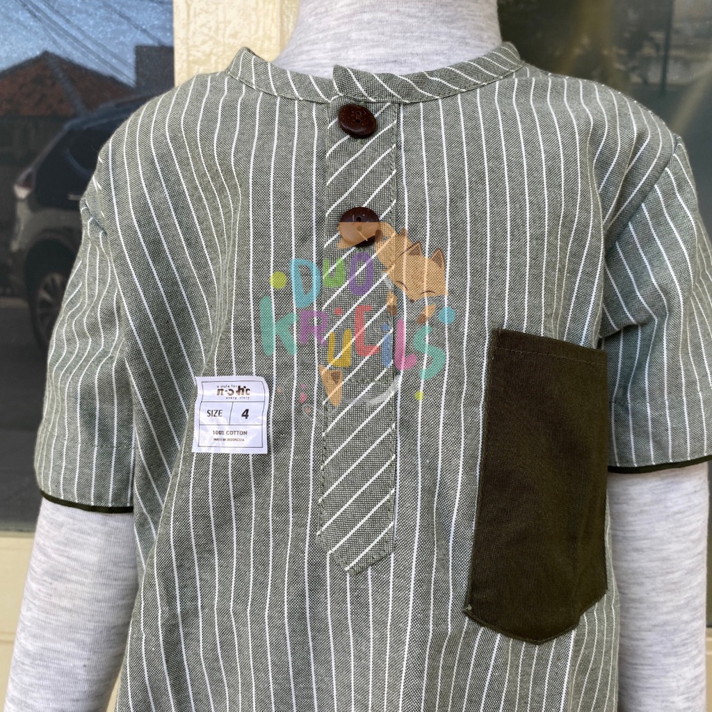 Kemeja koko motif garis Bahan cotton yarnded kancing hidup 1/2 badan Detil size (ukuran baju anak ya bukan badan) 4 (hanya kode ajah bukan umur) ; LD 36. P 51 cm 6 (hanya kode ajah bukan umur) ; LD 39. P 55 cm 8 (hanya kode ajah bukan umur) ; LD 42. P 58 cm 10 (hanya kode ajah bukan umur) ; LD 43. P 59 cm 12 (hanya kode ajah bukan umur) ; LD 45. P 63 cm