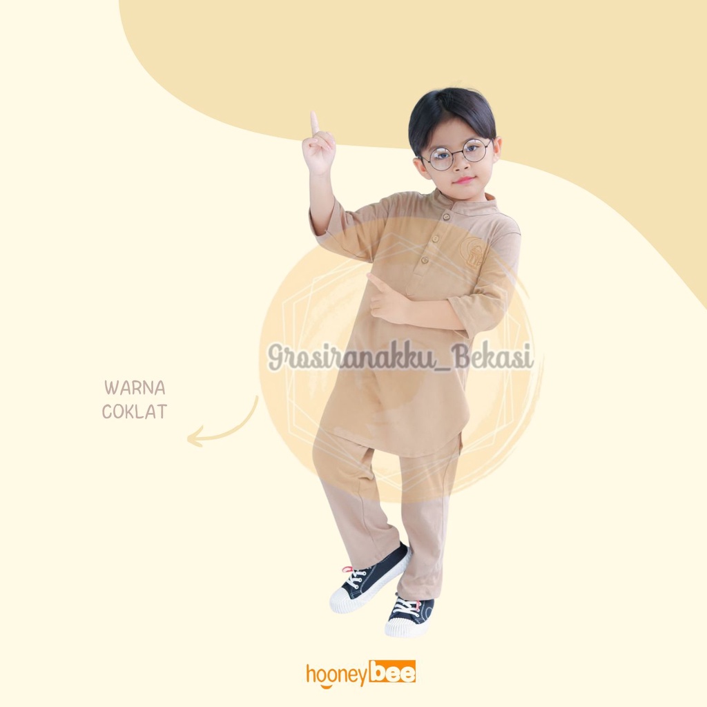 Detail Setelan Koko Anak Habibi Junior Hooneybee Warna Coklat Size 2-10 TAHUN