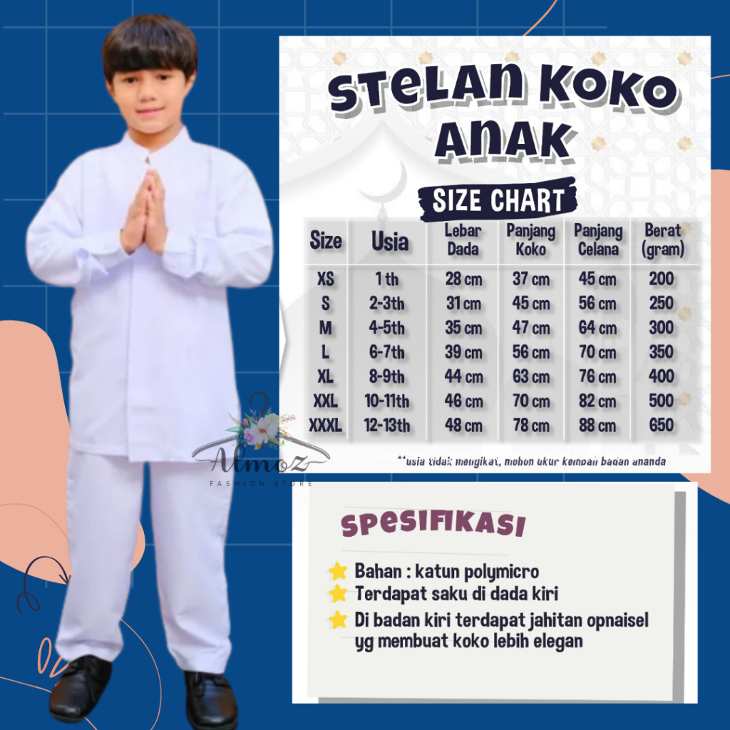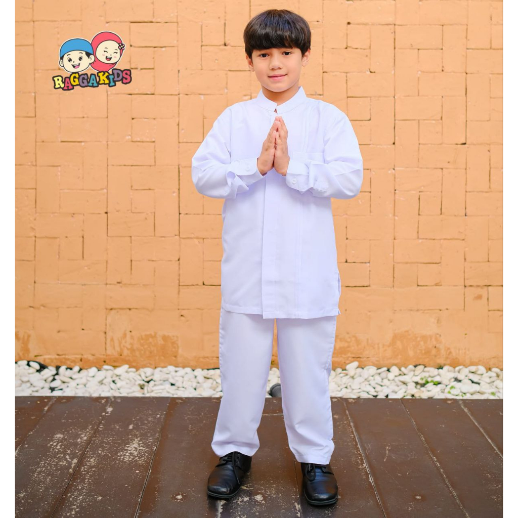 Detail Setelan koko anak putih dan celana Raggakids KR02 free peci