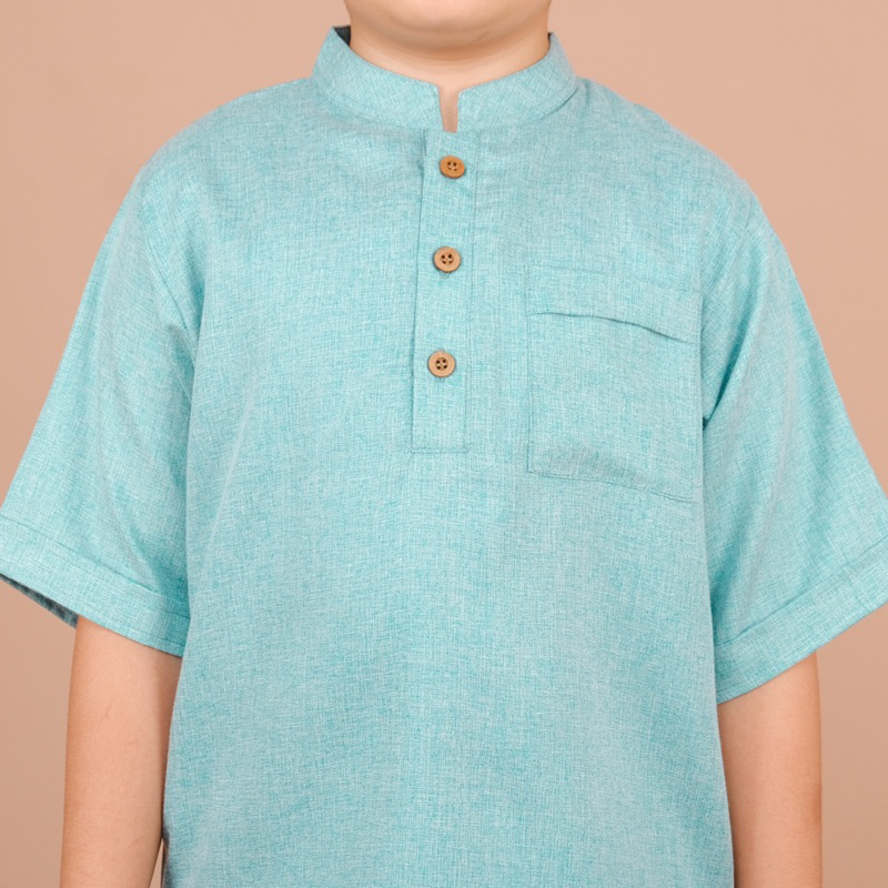 Koko premium ini bikin anak tampil beda Model : Atasan kancing hidup & Celana Panjang Bahan madinah Original (Warna Hijau, Biru, Coklat, Maroon) texture kain berserat, lembut dan nyaman dipakai, Khusus warna Broken White Bahan Linen texture kain polos Sangat cocok dipakai untuk acara resmi, juga untuk ke sekolah juga Mom.