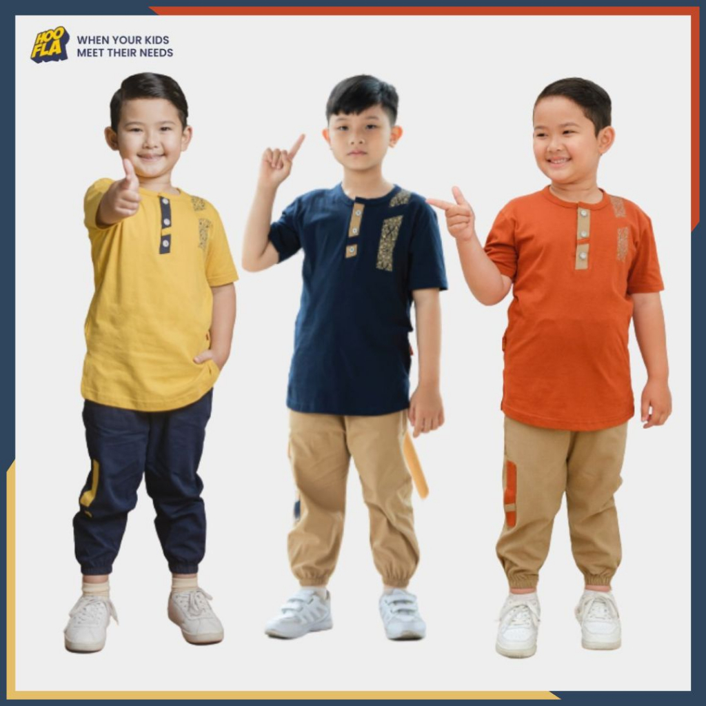 Berbahan Cotton Combed 24's dengan perpaduan Jogger canvas yang bakal jadi ciri khas koko anak satu ini ============ Available color : KOJO 01 - Mustard - Navy KOJO 02 - Navy - Sandcastle KOJO 04 - Auntumn Orange - Khaki ============ SIZE BAJU SIZE | PERKIRAAN USIA | LD X PB S = 3-4Thn = LD 32cm x PB 50cm M = 5-6Thn = LD 36cm x PB 54cm L = 7-8Thn = LD 40cm x PB 58cm XL = 9-10Thn = LD 43cm x PB 62cm XXL = 11-12Thn = LD 47cm x PB 66cm