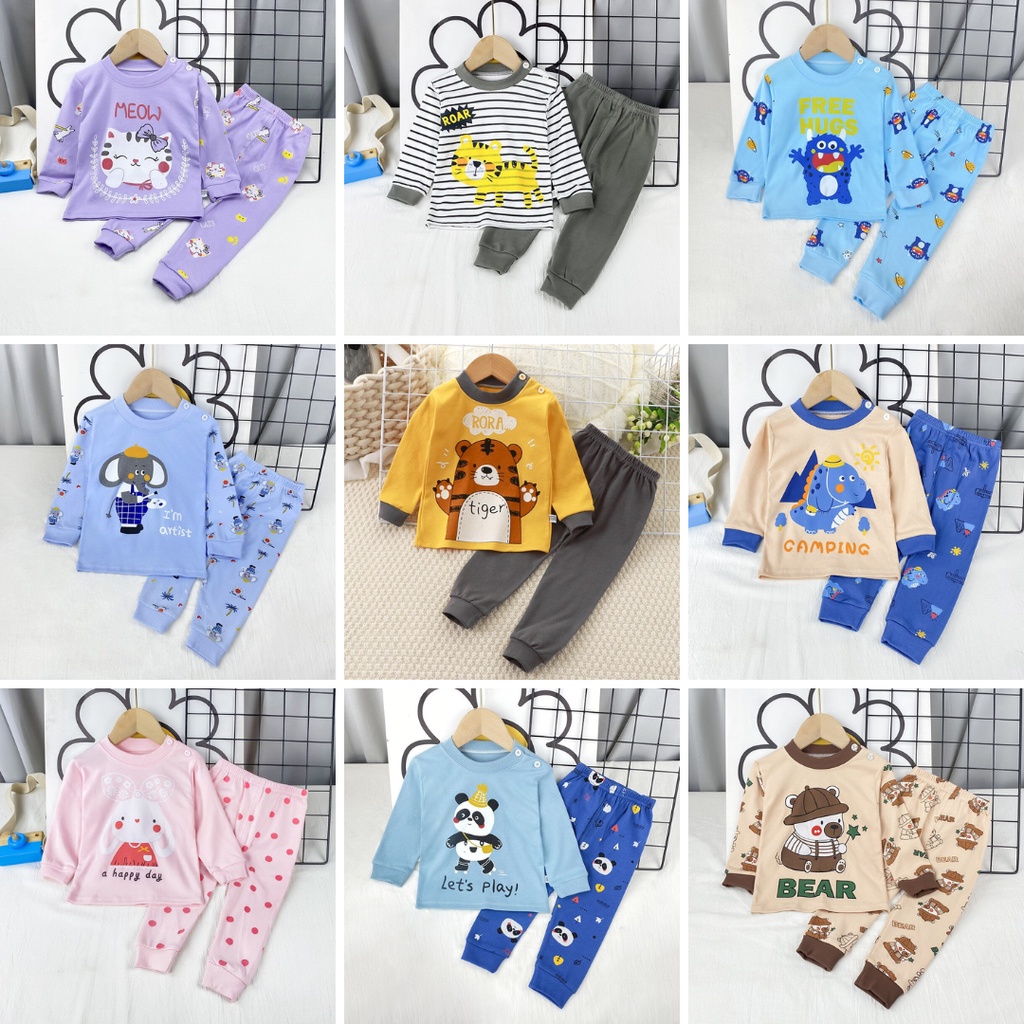 Detail Setelan lengan panjang anak unisex lucu / baju setelan anak usia 0-2 tahun motif karakter import