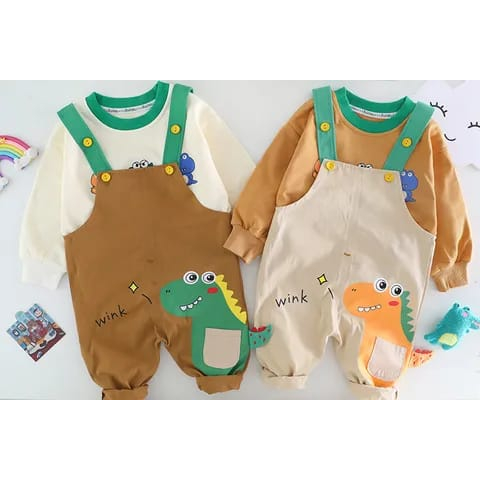Detail setelan lucu anak import model kodok motif waf cream ala korea usia 6 bulan - 5 tahun