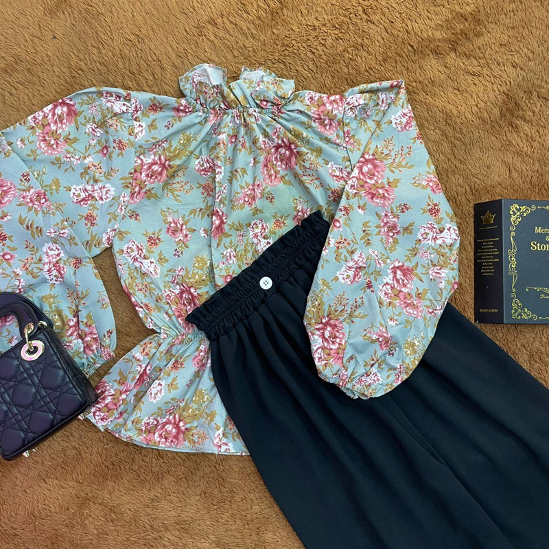 Pakaian Wanita > Set > Set Wanita > SETELAN MOTIP BUNGA TERBARU BAJU + CELANA