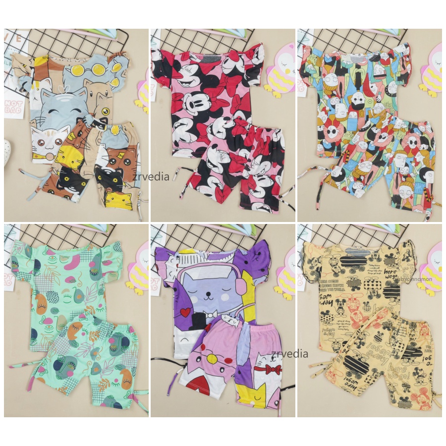 Setelan Oceana uk 2-3 Tahun / IMPORT Baju Harian Lengan Pendek Anak Perempuan Katun Rayon Adem