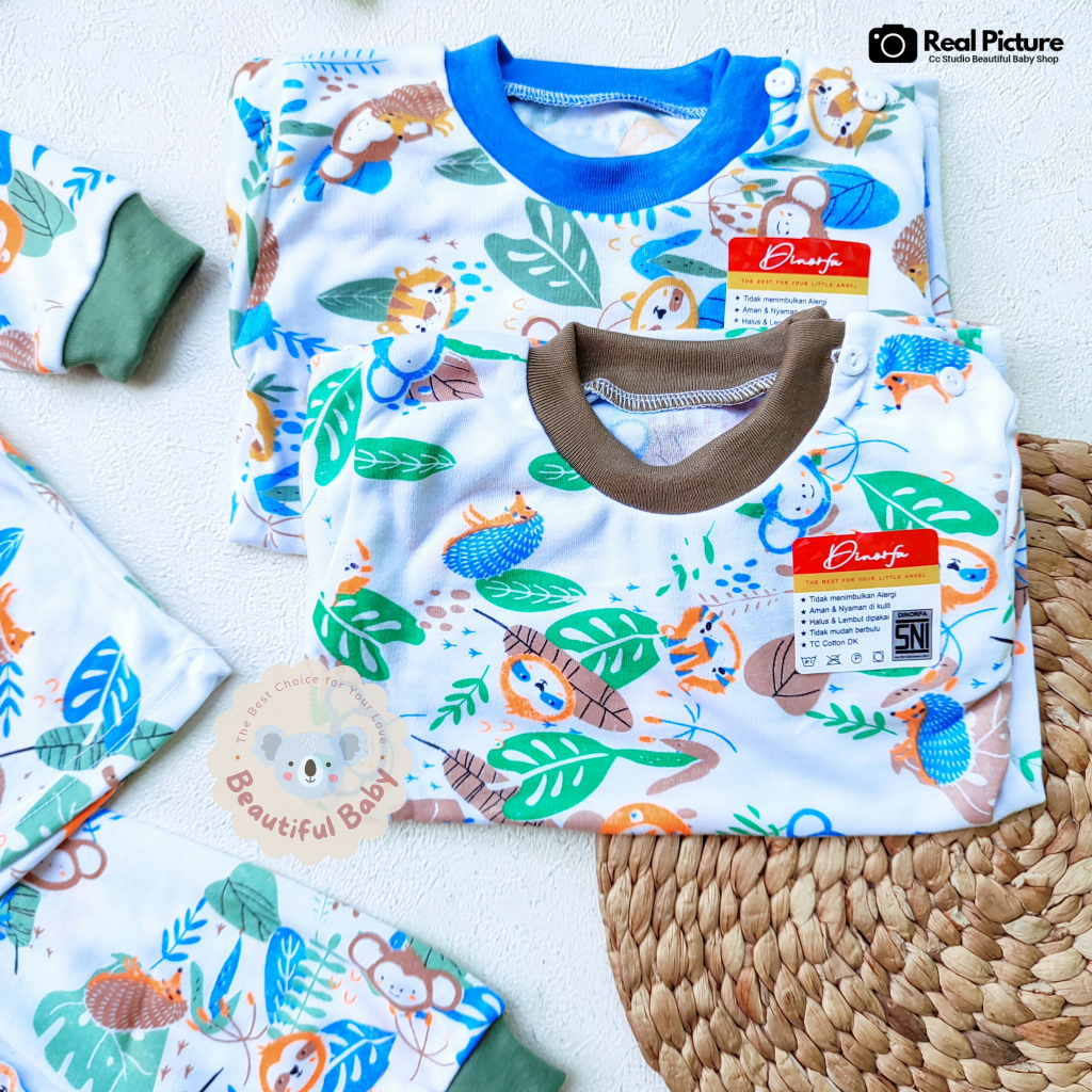 Detail Setelan PIyama Baju Bayi Usia 3-18 Bulan Motif Monkey Monstera / Baju Tidur Bayi Lengan Panjang Celana Panjang Kaos Oblong Kancing Pundak / Baby.ou