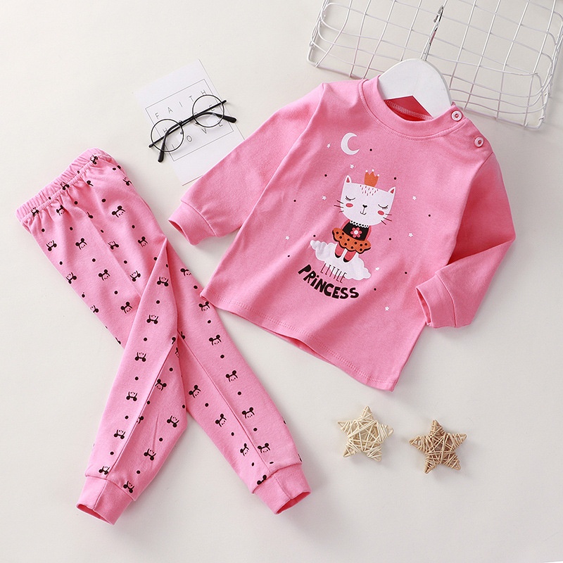 set piyama/baju tidur anak perempuan lengan+celana panjang bahan katun berkualitas motif kucing bahan katun adem nyaman dipakai dan tidak panas tersedia berbagai ukuran :