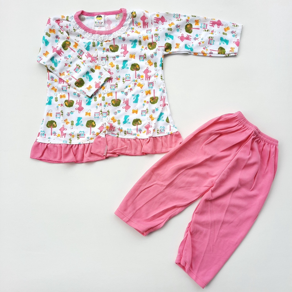 Setelan Baju Bayi Perempuan usia 6 18 Bulan Bahan Katun Nyaman Di Pakai Warna Tidak Mudah Luntur Harga Bersahabat Harga Untuk 1 setelan Ukuran • L Dada 58 cm • panjang baju 39 cm • Lengan 23 cm Celana • L Pinggang 13 >>27 cm • Panjang 40 cm Estimasi Berat Badan 5 - 9 kg • Mohon Untuk Memberi Catatan Warna Cadangan Jika Stok Kami Tidak Tersedia Yuk Bunda Order Sekarang