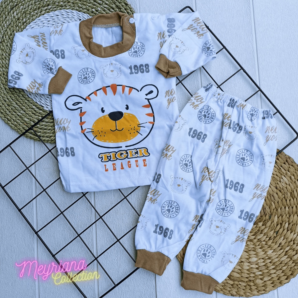 Setelan Piyama Panjang Oblong Baju Tidur Baju Anak Usia 3-12 Bulan Motif TIger Oblong Kancing Bahu