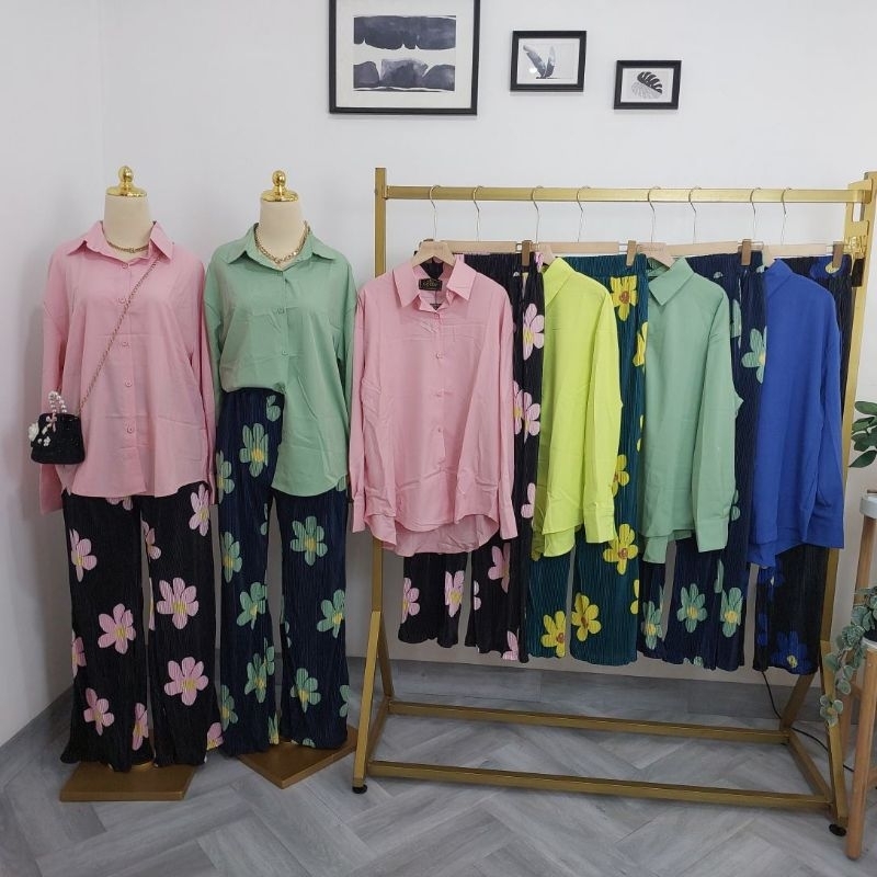 SETELAN PLEATS MOTIF BUNGA CODE 25783