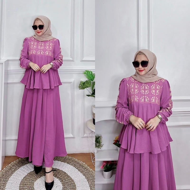 Detail Setelan Rok Airflow Crinkle Bordir Premium New Syalinaset rok maroko bordir Dress Maxy Terbaru 2022