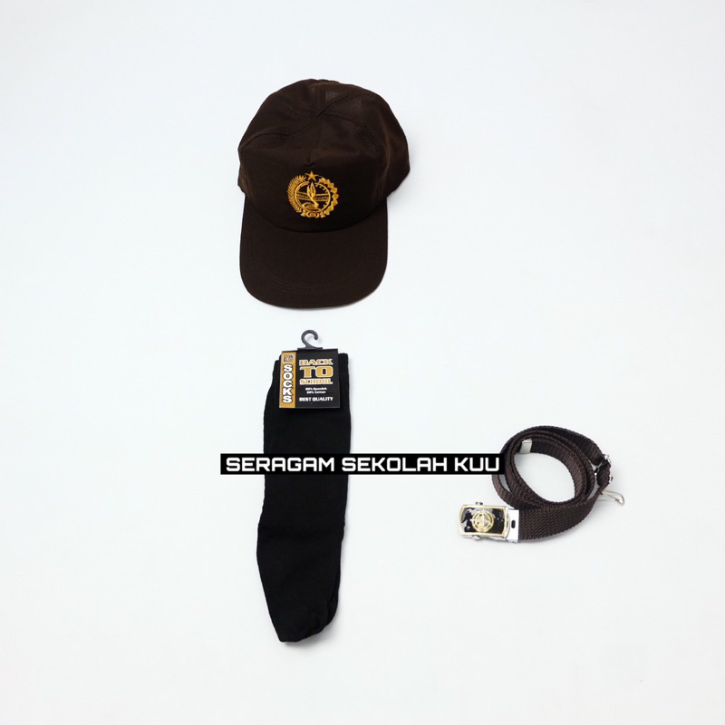 Satu Set Seragam Sekolah Cewe Terdiri Dari * Kemeja Pramuka Pendek Perempuan dengan tali * Rok Coklat Panjang * Topi * Gesper SD