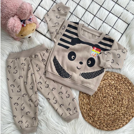 Detail setelan sweater anak laki-laki/perempuan lengan panjang 3-18 bulan motif panda
