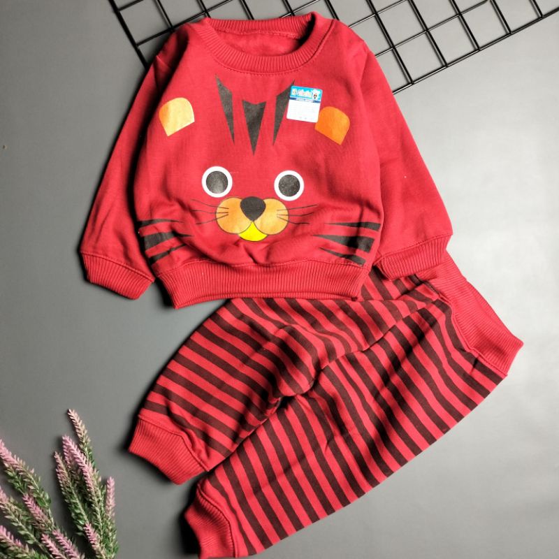 Detail setelan sweater mantel bayi murah 0-12 bulan motif tiger