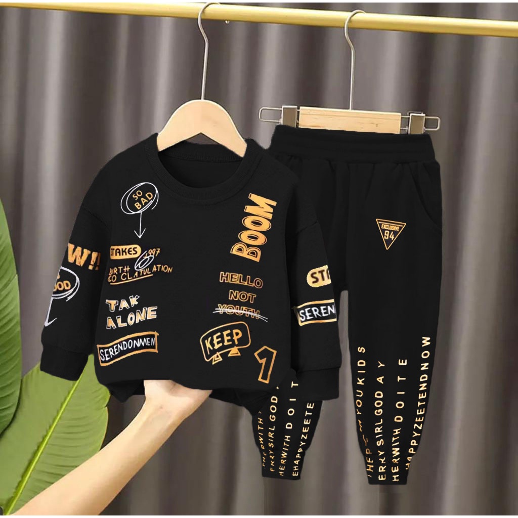 setelan switer anak terbaru motif boom 6bulan-5thn grosir