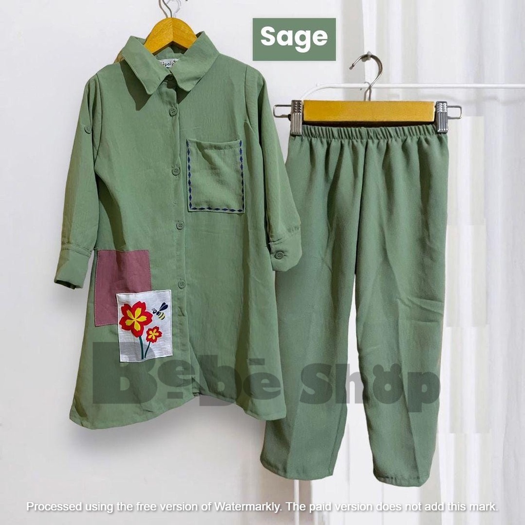 Setelan Tunik anak perempuan bahan cringkel airflow usai 3 sampai 12 Tahun