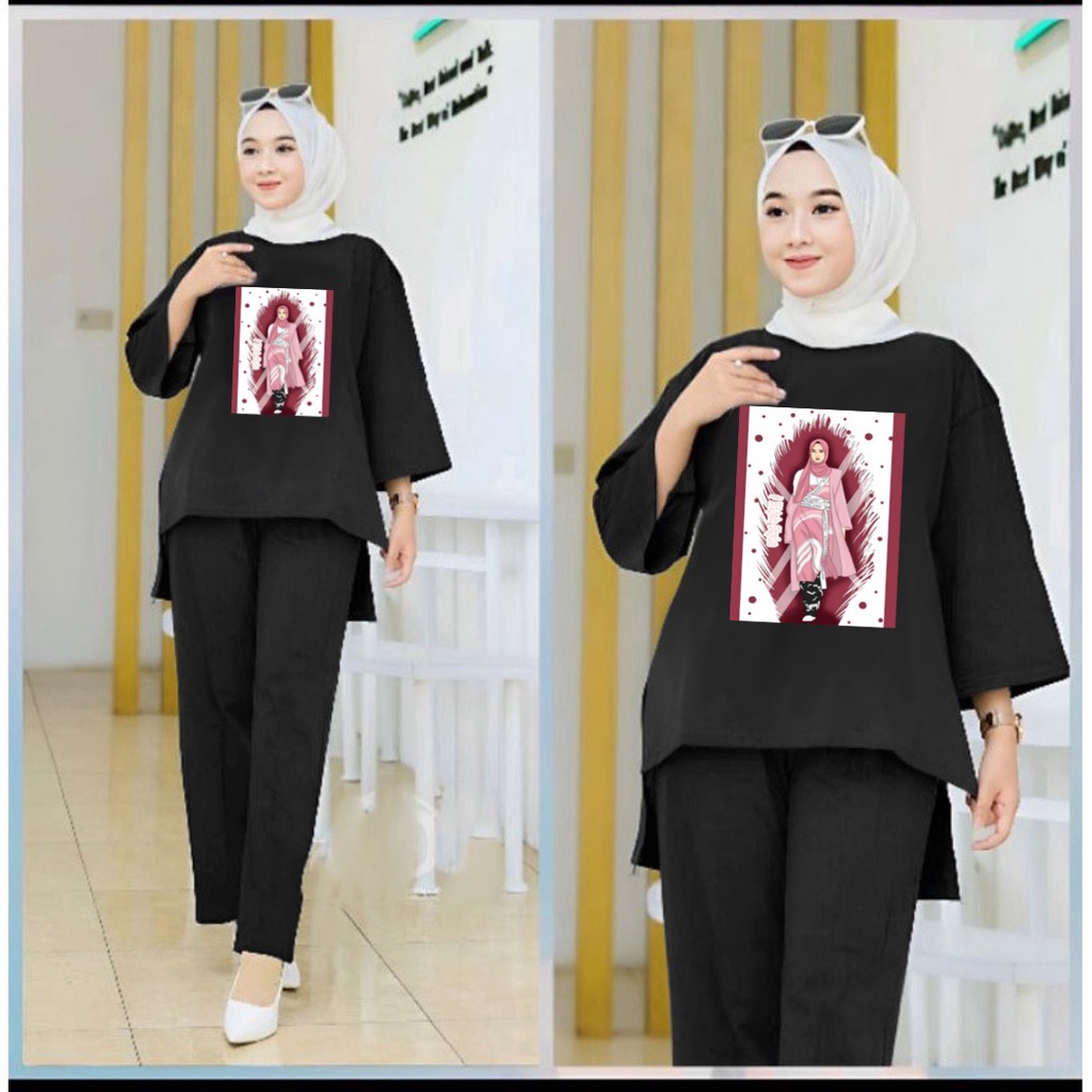 Setelan Tunik HIjab Style Merah/Fashion Muslim Senyawa