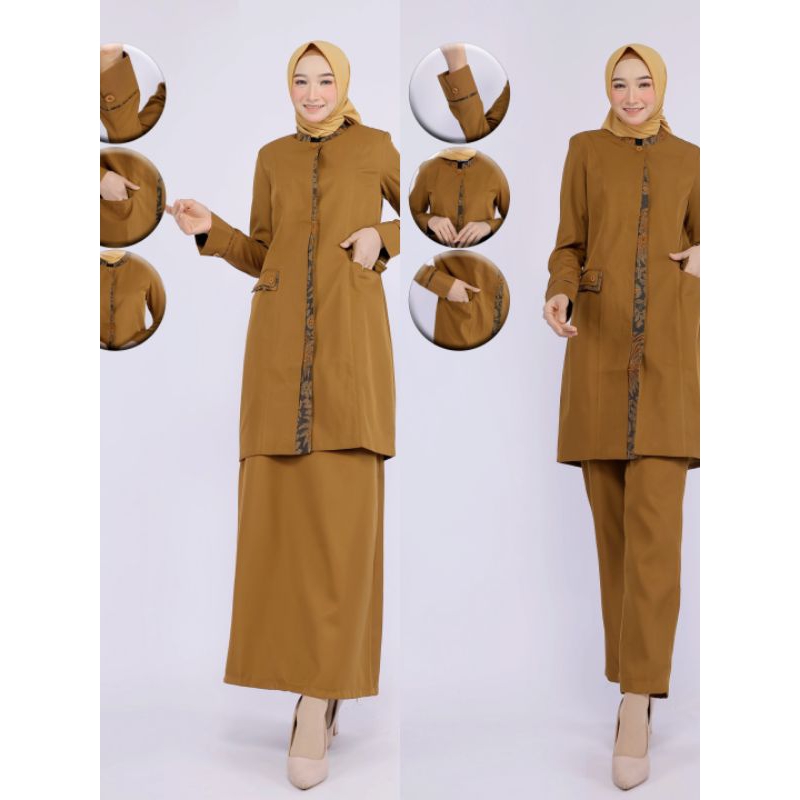 Detail SETELAN TUNIK PEMDA TUA KANTONG TUTUP KOMBINASI BATIK SET EOK. A / SET CELANA BAHAN KATUN. FREE HIJAB l