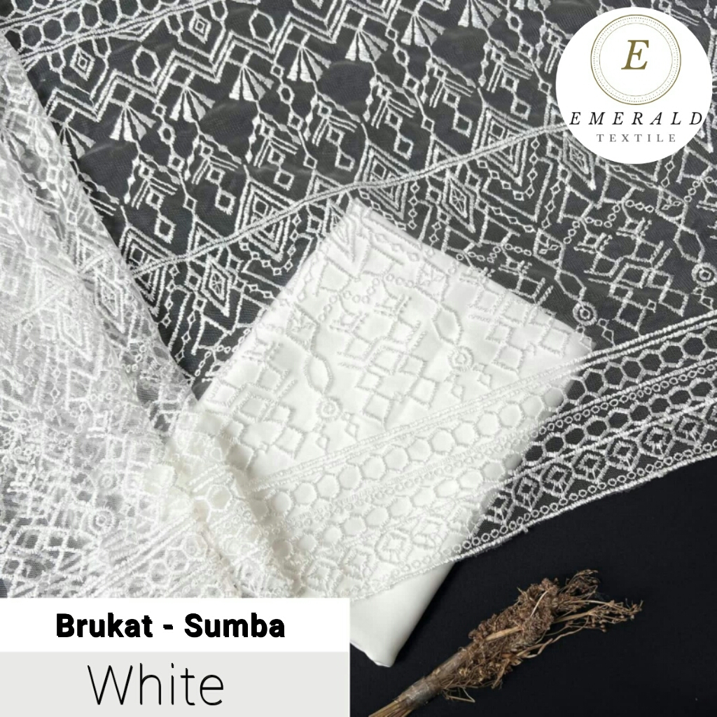 Kain Brokat Tile Prancis Bahan Kebaya Motif Sumba Warna - White - Untuk pilihan warna dan motif kain brokat lainnya cek di katalog Emerald_Textile