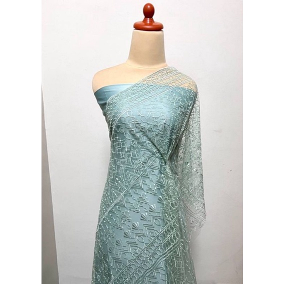 Kain Brokat Tile Prancis Bahan Kebaya Motif Sumba Warna - Mint - Untuk pilihan warna dan motif kain brokat lainnya cek di katalog Emerald_Textile