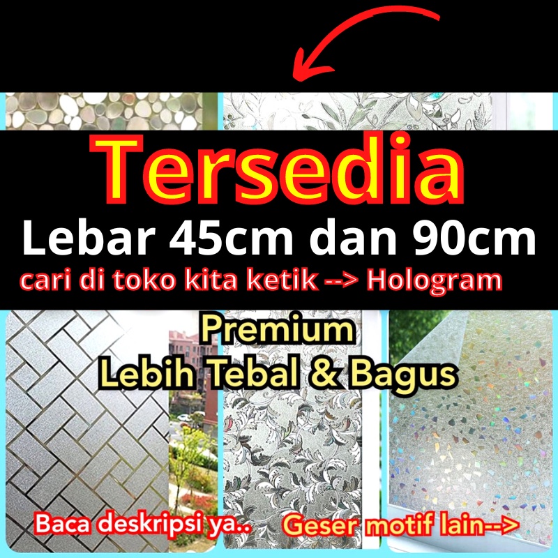 Hai Kakak Maaf Mohon dibaca sampai SELESAI ya Kak . ✅ Produk Stiker Kaca Pintu / Jendela ✅ Bahan PVC khusus kaca PREMIUM (bahan lebih TEBAL / BERTEKTUR /Elegan /kesan mewah) . ✅ stiker kaca bahan TANPA LEM /bahan STATIC ( Static artinya + - sperti magnet tarik menarik antara stiker dan kaca jadi stiker menempel sendiri dikaca SETELAH air shampo dikeluarkan, jadi tidak perlu lem ya Kak...) PROSES pasang bisa di baca keterangan DIBAWAH dan CARA PASANG sperti divideo) ✅ KELEBIHAN: - Bahan Tebal Bertektur - Kesan Mewah - Pemasangan sangat mudah karena tanpa lem - Menahan/memantulkan sinar UV matahari jadi tidak bikin silau sinar matahari