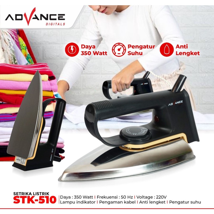 Setrika Advance STK-510 Dry Iron Setrika Anti Lengket Bergaransi Resmi - Hitam Deskripsi Setrika Advance STK-510 Dry Iron Setrika Anti Lengket Bergaransi Resmi