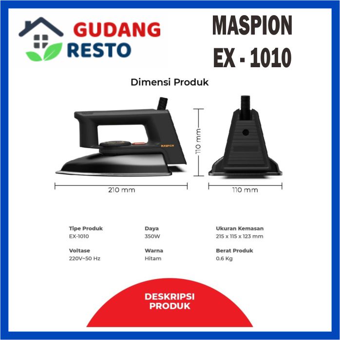 Detail SETRIKA MASPION EX 1010 BB DRY IRON OTOMATIS GOSOKAN LISTRIK BAJU KERING AUTOMATIC IRON SETERIKA EX1010 EX1010BB