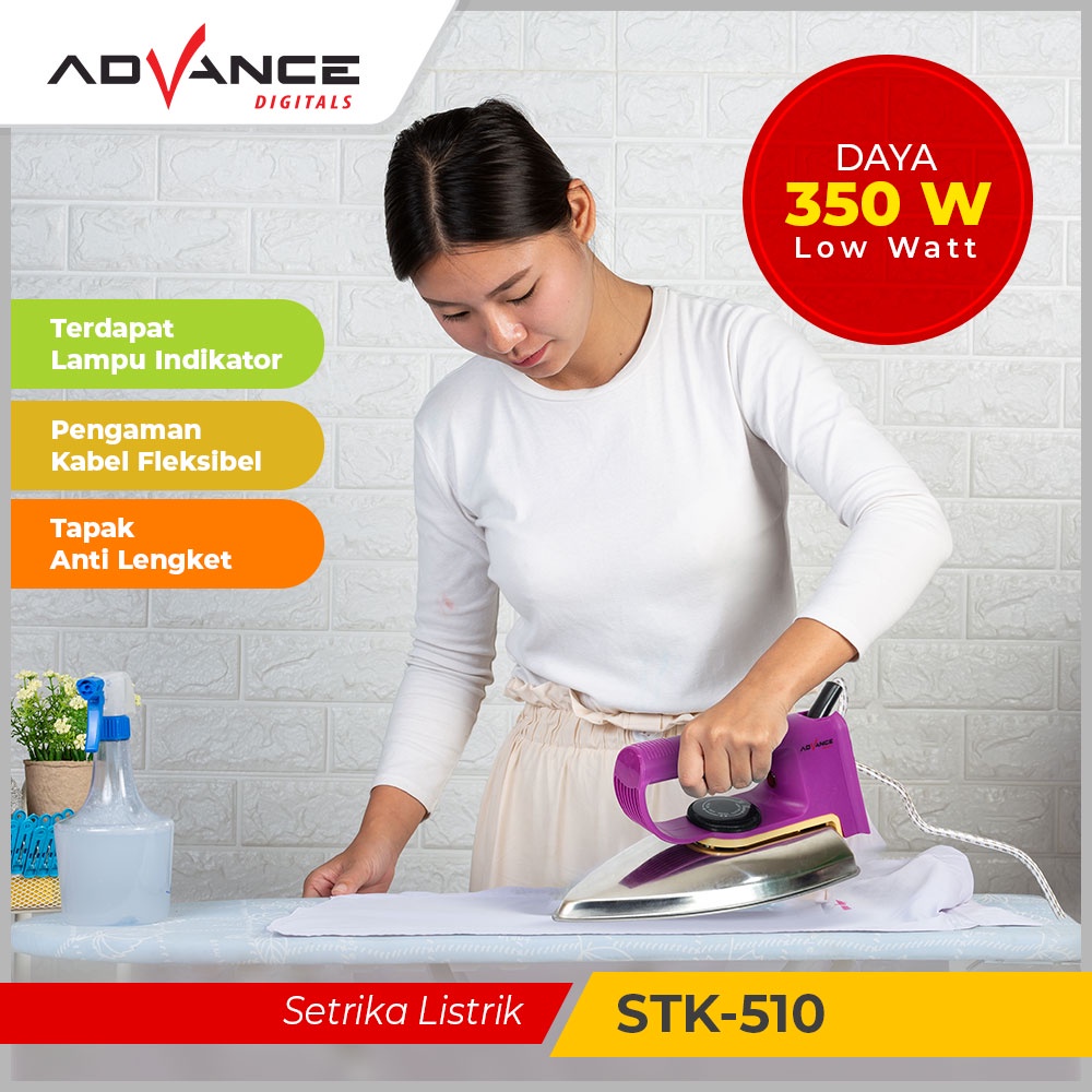 Elektronik > Setrika & Mesin Uap > Setrika Uap Listrik Advance (Dry Iron) Anti Lengket STK510 Setrika Listrik hemat listrik 350 W Bergaransi Resmi 1 Tahun