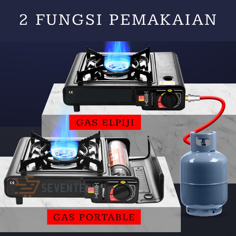 Perlengkapan Rumah > Peralatan Masak > Kompor & Regulator Gas > SEVENTEEN KOMPOR GAS PORTABLE 2IN1 SNI OMICKO 1 TUNGKU KOMPOR PORTABLE MINI SET KOPER DAN CONECTOR LPG TABUNG GAS GAS STOVE PORTABLE