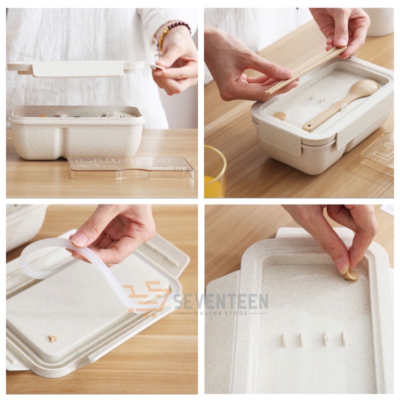 Detail SEVENTEEN LUNCH BOX SET BPA FREE ANTI TUMPAH TEMPAT BEKAL MAKAN SET PORTABLE 3 SEKAT KOTAK BEKAL RANTANGAN MAKANAN JERAMI GANDUM BENTO BOX