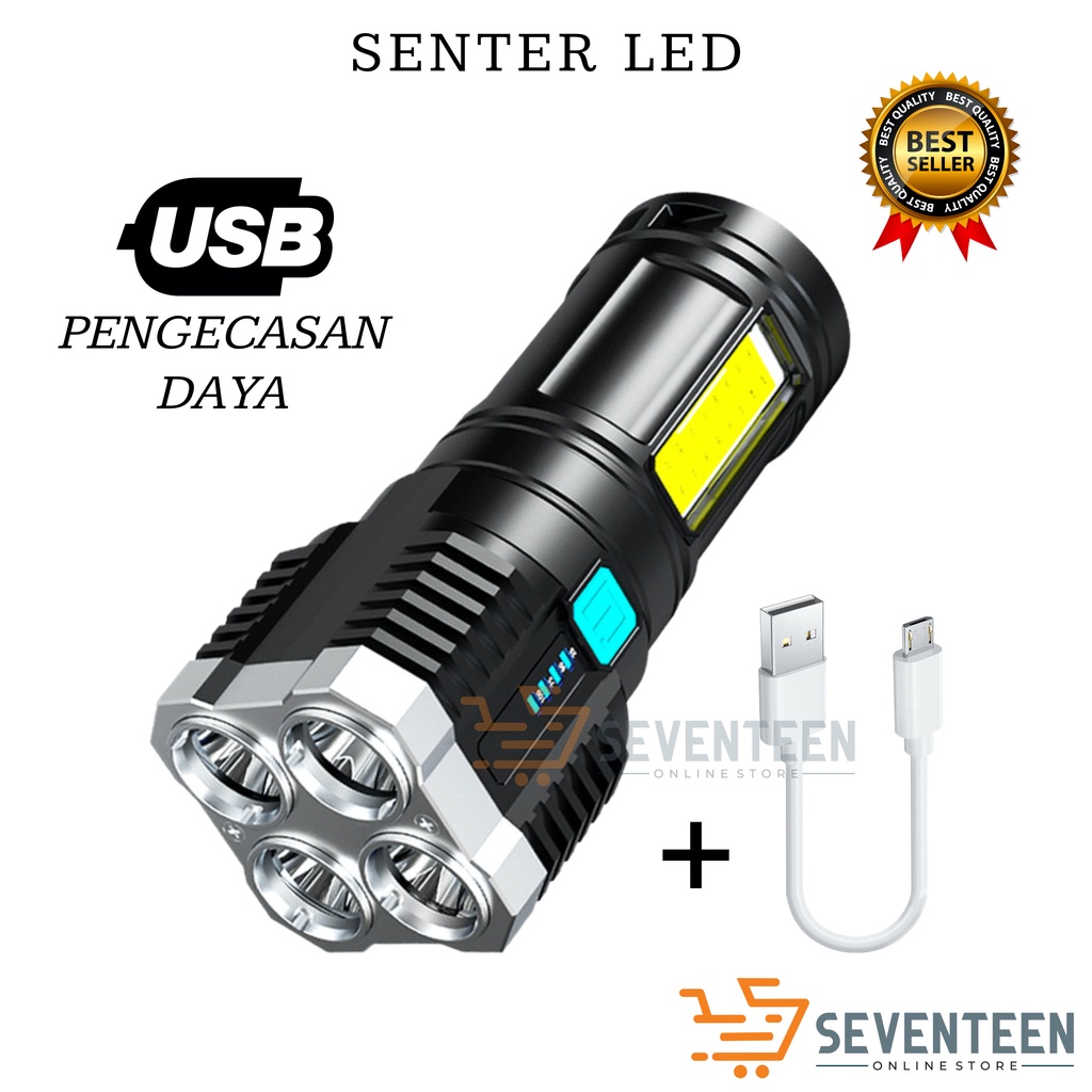 Detail SEVENTEEN SENTER 4 LED COB SENTER 4 MODE JARAK JAUH SUPER TERANG SENTER CAMPING 4 MODE LAMPU SENTER CHARGER USB SENTER BATERAI CAS