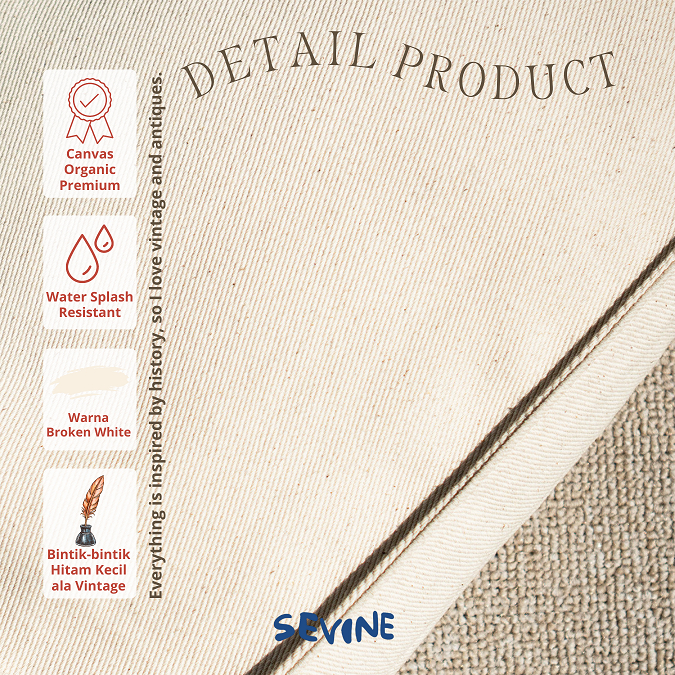 SPESIFIKASI PRODUK: Perekat: RESLETING Bahan : Kain Kanvas Organik Premium Water Splash Resistant Warna: Broken White Cetak : DTF Ukuran : 26cmx18cm Panjang Tali : 20-45cm