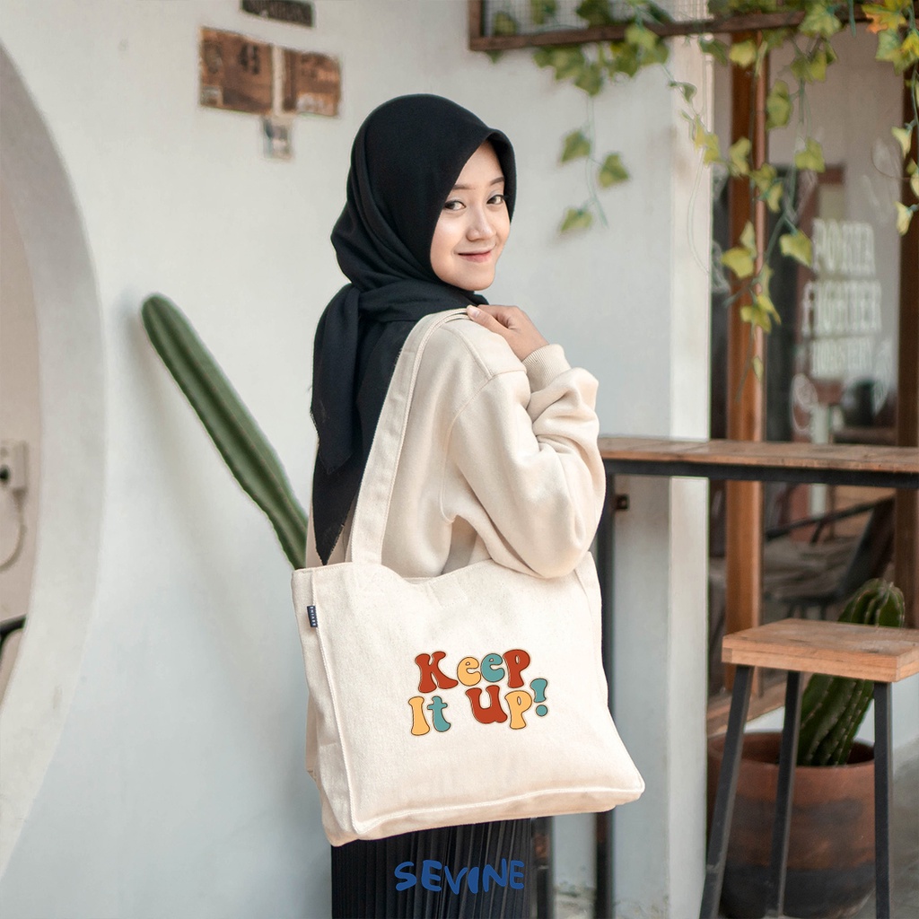 Video perkenalan produk Sevine Totebag Kanvas Daisy Tas Wanita Tote Bag Kuliah Sekolah Kerja Kantong Laptop Quotes Aesthetic - KJ. Sumber: Shopee.